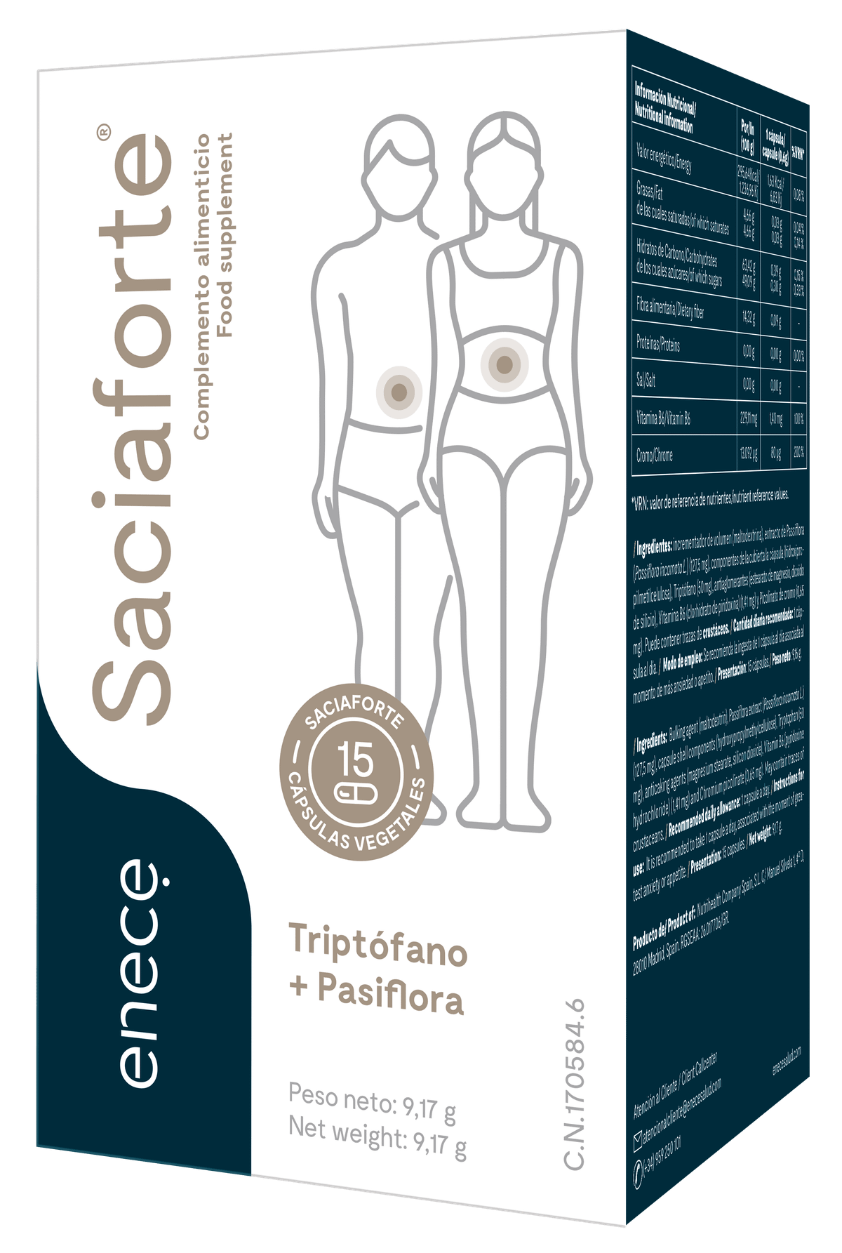 Além disso, devido ao seu alto teor de cromo, tem efeito saciante, pois atua controlando a vontade de petiscar. Desta forma, Saciaforte ajuda-o a controlar o apetite durante a noite e a concentrar a maior parte da sua ingestão nas primeiras horas do dia.