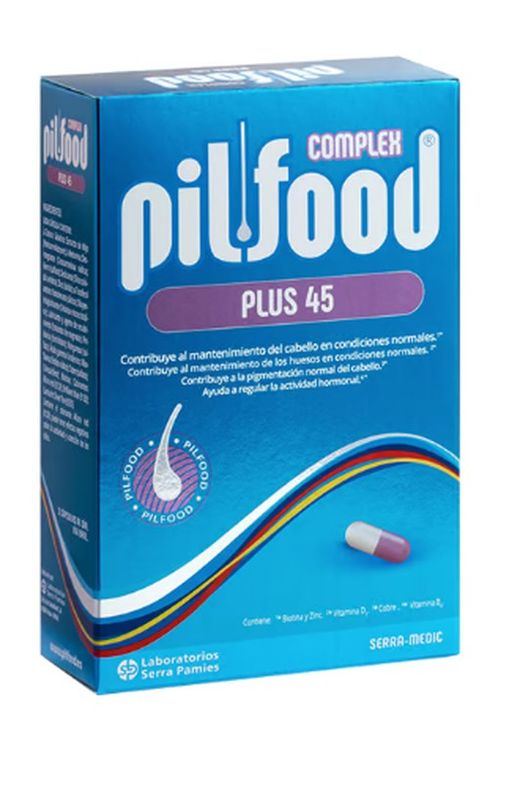 Pilfood complex plus 45 é um suplemento alimentar adequado para o período da menopausa em mulheres com múltiplos benefícios. Recipiente 90 cápsulas.