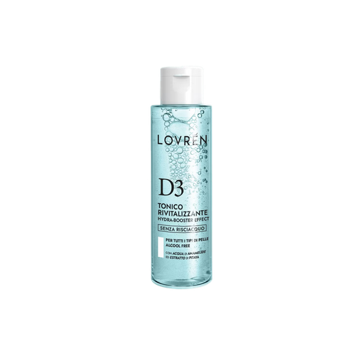 Lovren tonico revitalizante D3 100 ml es un tónico facial revitalizante diseñado para tonificar, hidratar y refrescar el rostro tras la limpieza facial. Es apto para todo tipo de pieles ya que su fórmula es suave y no contiene alcohol. Ideal para las personas que quieran sentir su rostro fresco y hidratado ligeramente, sin sentir ninguna irritación.