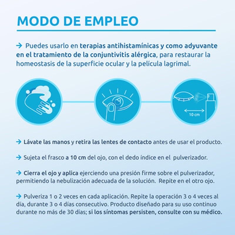 - Aplique no olho fechado, aplicando pressão firme no spray, permitindo a nebulização adequada da solução.